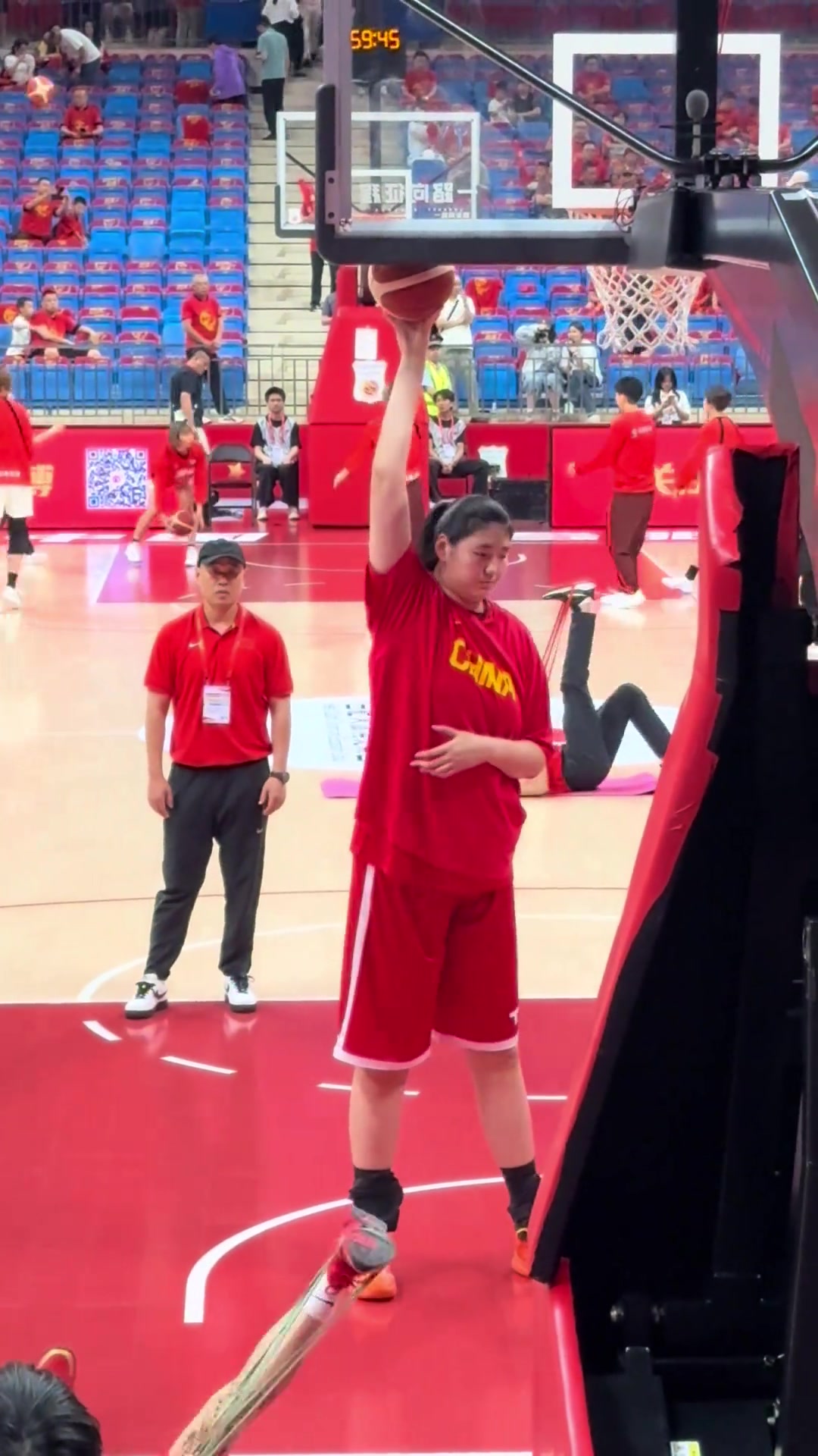 这压迫感张子宇站着就够到篮板了