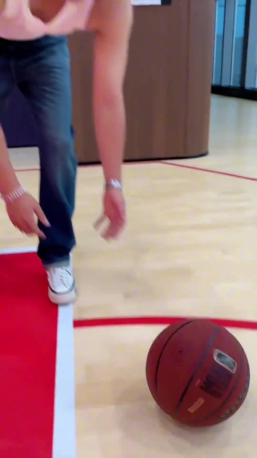 女生打篮球本想突破没