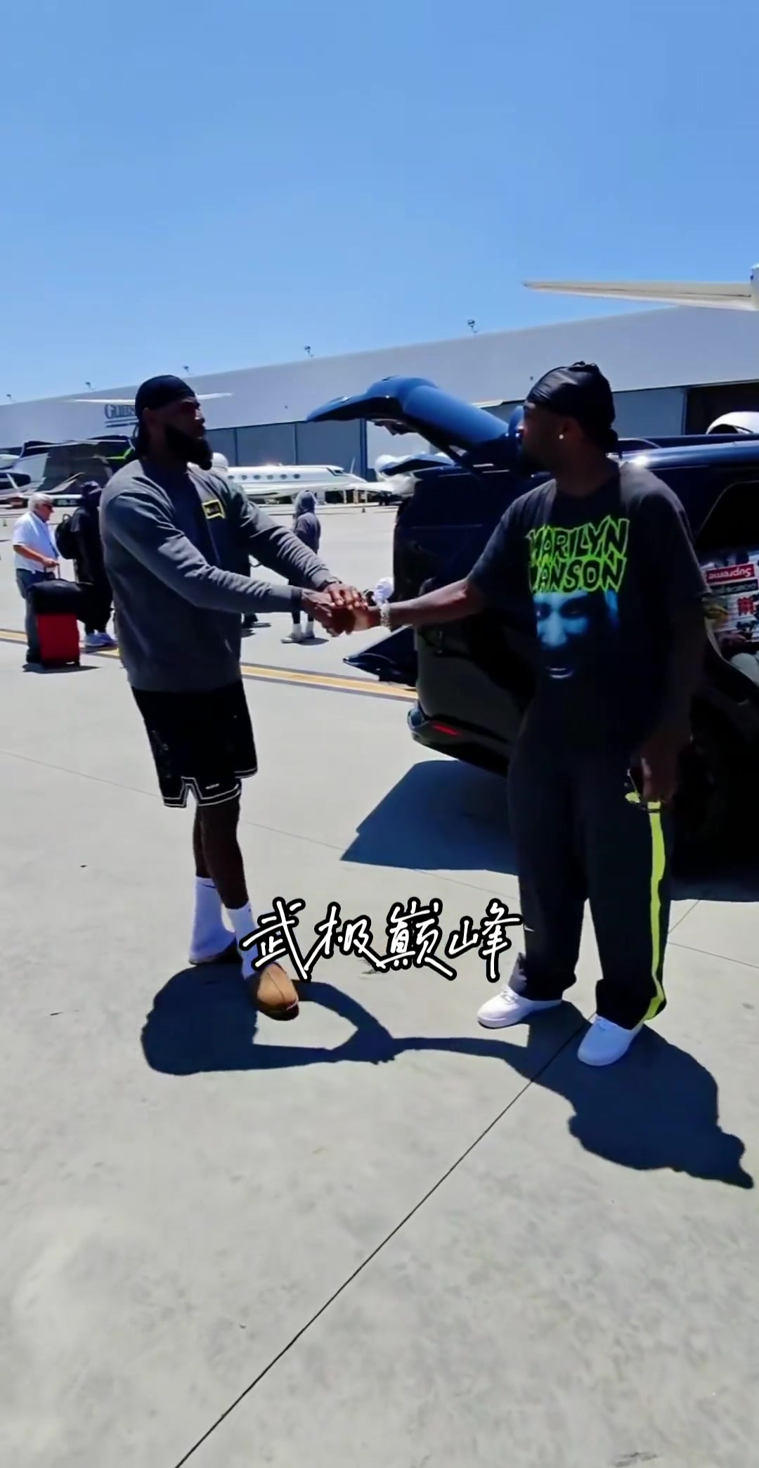 詹姆斯与国际米兰球星图拉姆在机场偶遇拥抱合影