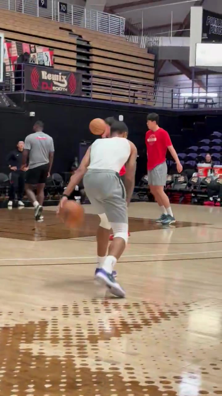 真的秀啊杨瀚森赛前热身时大秀梦幻脚步
